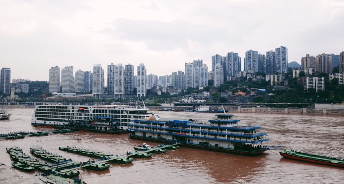 ·朝天门码头自古江面樯帆林立,舟楫穿梭,江边码头密布,人行如蚁。